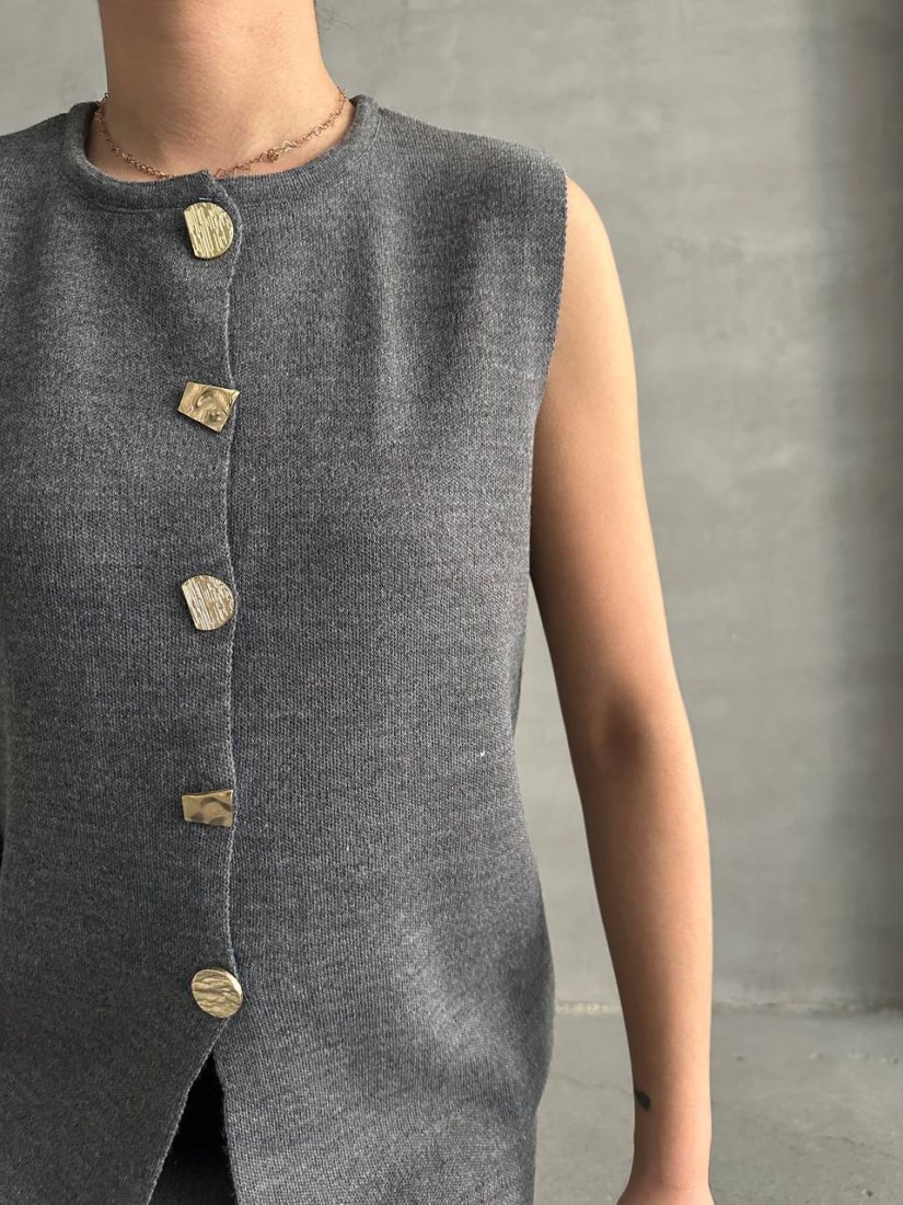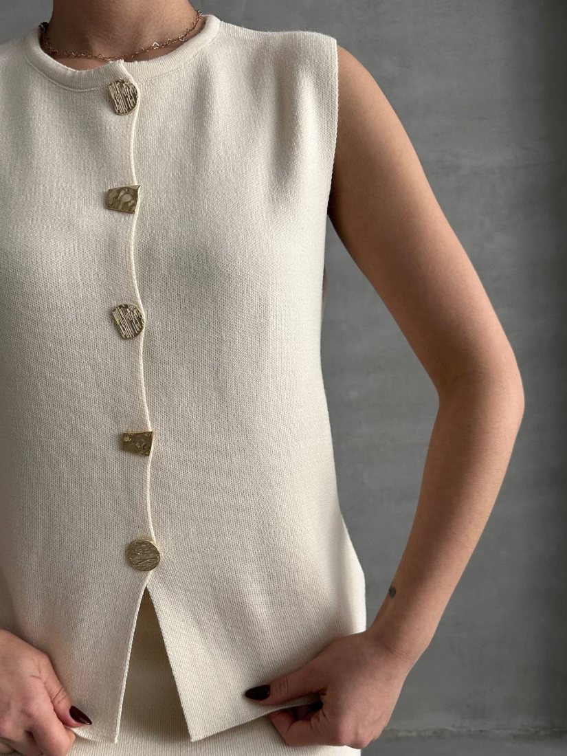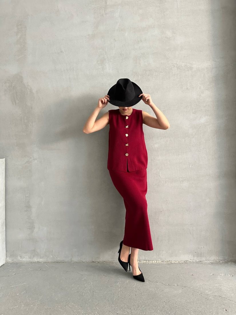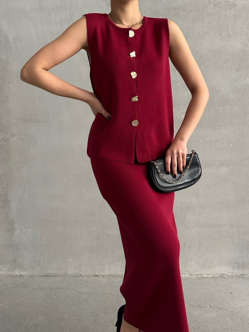 Αναβαθμίστε το στυλ σας με αυτό το κομψό σετ γιλέκο και φούστα με ελαφριά πλέξη. Σχεδιασμένο σε one-size, προσφέρει άνεση και κομψότητα για κάθε περίσταση.